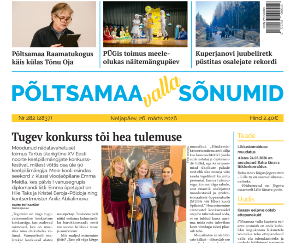 Kuulutuste väljavõte meie paberlehest PDF formaadis. Lugemiseks lae alla PDF fail järgnevalt lingilt.