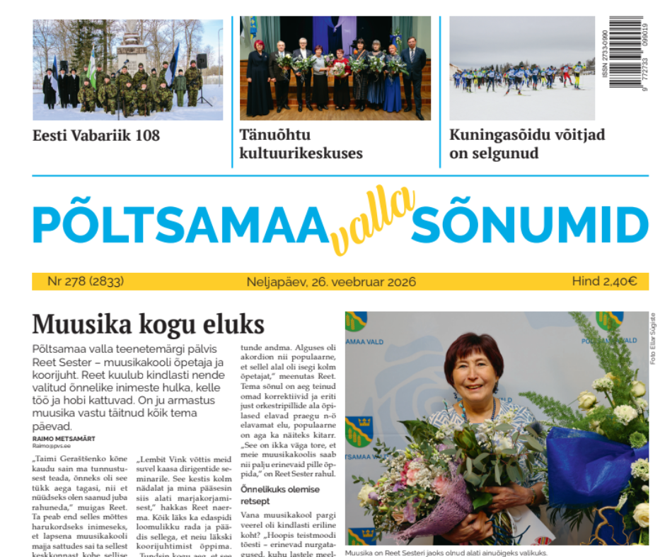 Teisipäeval, 4. juunil tähistati kõikjal Eestis meie rahvuslipu päeva. Põltsamaal algasid sündmused juba kell 9 hommikul ja tipnesid õhtuse kontserdiga Roosisaarel, kus esinejaks oli Andrus Bonzo Albrecht. RAIMO METSAMÄRT Raimo@pvs.ee Lossi Magnuse saalis esitasid õpilased ettekandeid, mis olid seotud meie rahvuslipuga. Ettekanded kandsid nime „Minu pere lipu lugu“ ja neid esitasid Maria-Delisa Anton,…