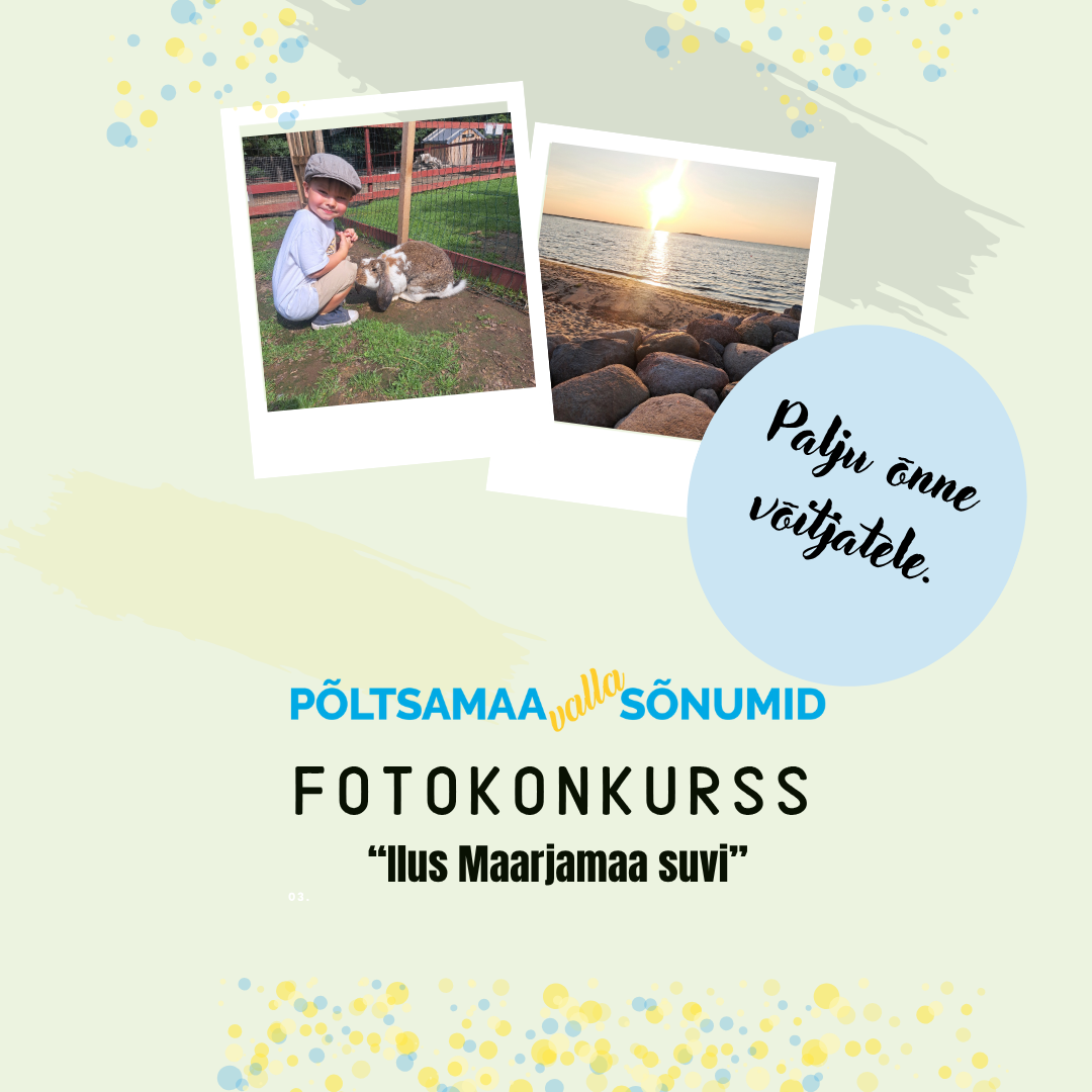 Aitäh kõigile, kes meie fotokonkursil „Ilus Maarjamaa suvi” osalesid ja jagasid oma kauneid ja vahvaid hetki suvest! Konkursile laekus 49 pilti, mis näitasid meie kaunist loodust ja argiseid rõõme. Saadeti pilte loodusest, loomadest ja laste suvistest rõõmuhetkedest.